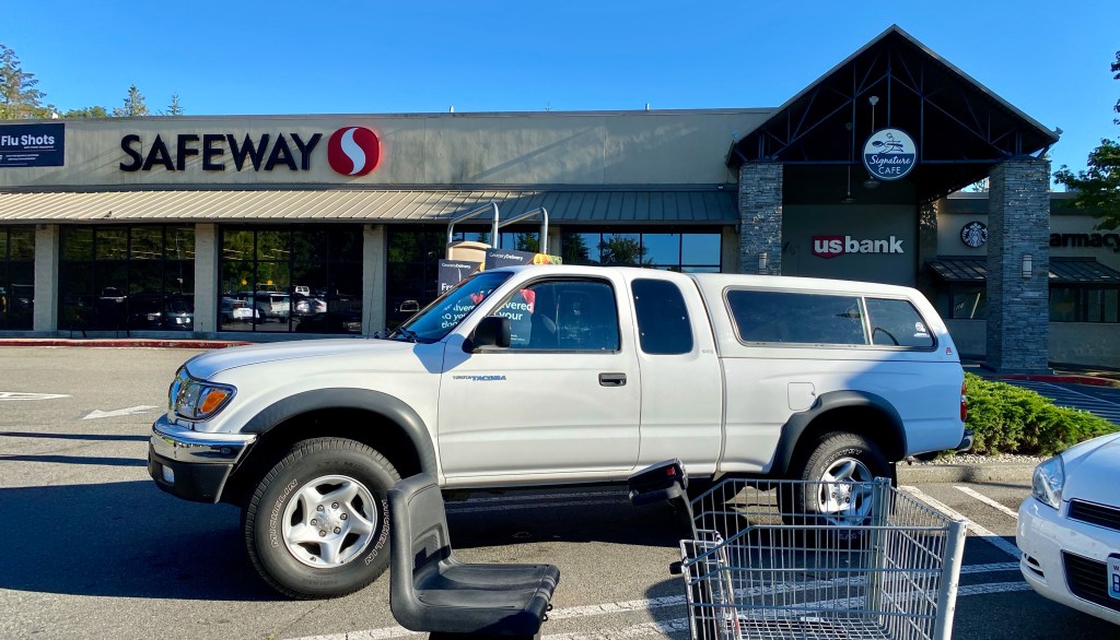 The Safeway where we met, as seen from my car.